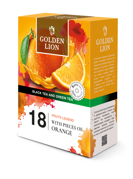 Чай черный и зеленый GOLDEN LION Фруктовая Легенда/18 Апельсин 90гр