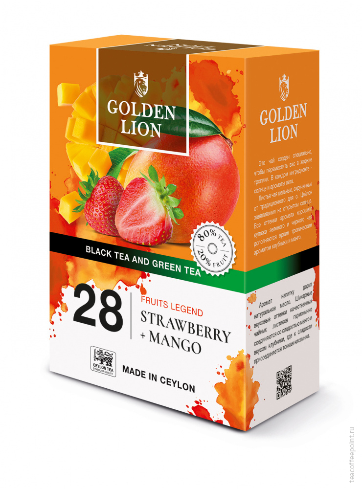 GOLDEN LION Чай черный и зеленый Фруктовая Легенда/28 Клубника+ Манго 90гр