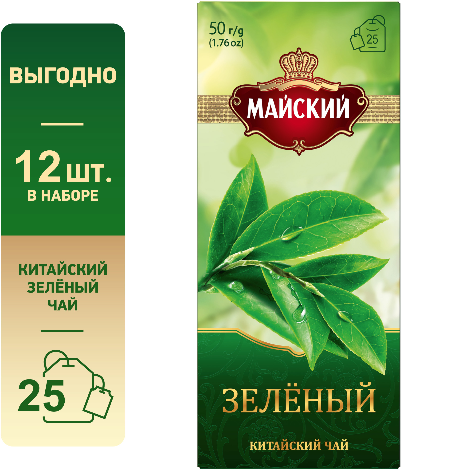 Чай Майский "Зелёный" (25 пакетов) 50 гр/27шт 25258