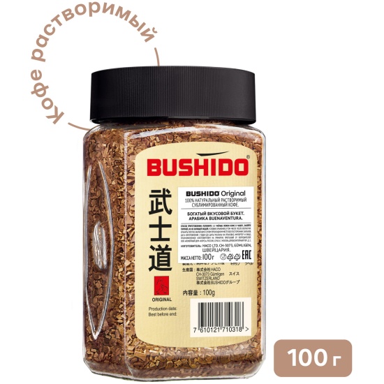 Кофе BUSHIDO Original 100г сублимир.растворимый 1/9 ст/банка
