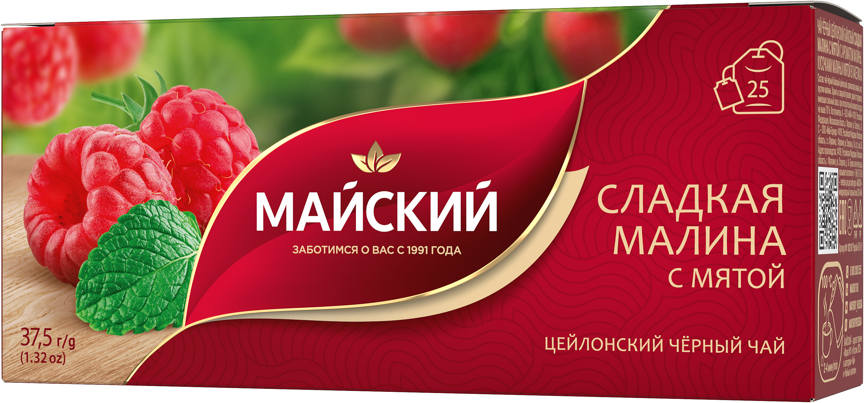 Чай Майский "Сладкая малина с мятой" (25пакетов) 37,5 гр/18 шт 28620