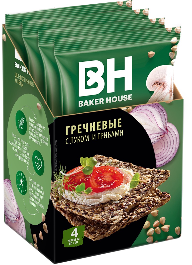 Baker Hause СКАНДИНАВСКИЕ хлебцы цельнозерновые гречневые с луком и грибами180гр 8ш