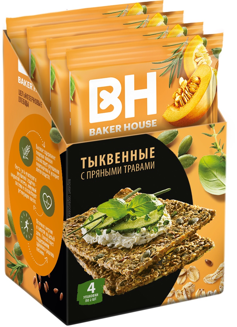 Baker Hause СКАНДИНАВСКИЕ хлебцы цельнозерновые тыквенные с пряными травми 180гр 8шт