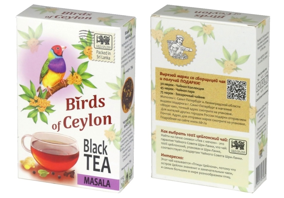 Чай Birds of Ceylon (Птицы Цейлона) Масала листовой 75г 24шт Шри-Ланка 486
