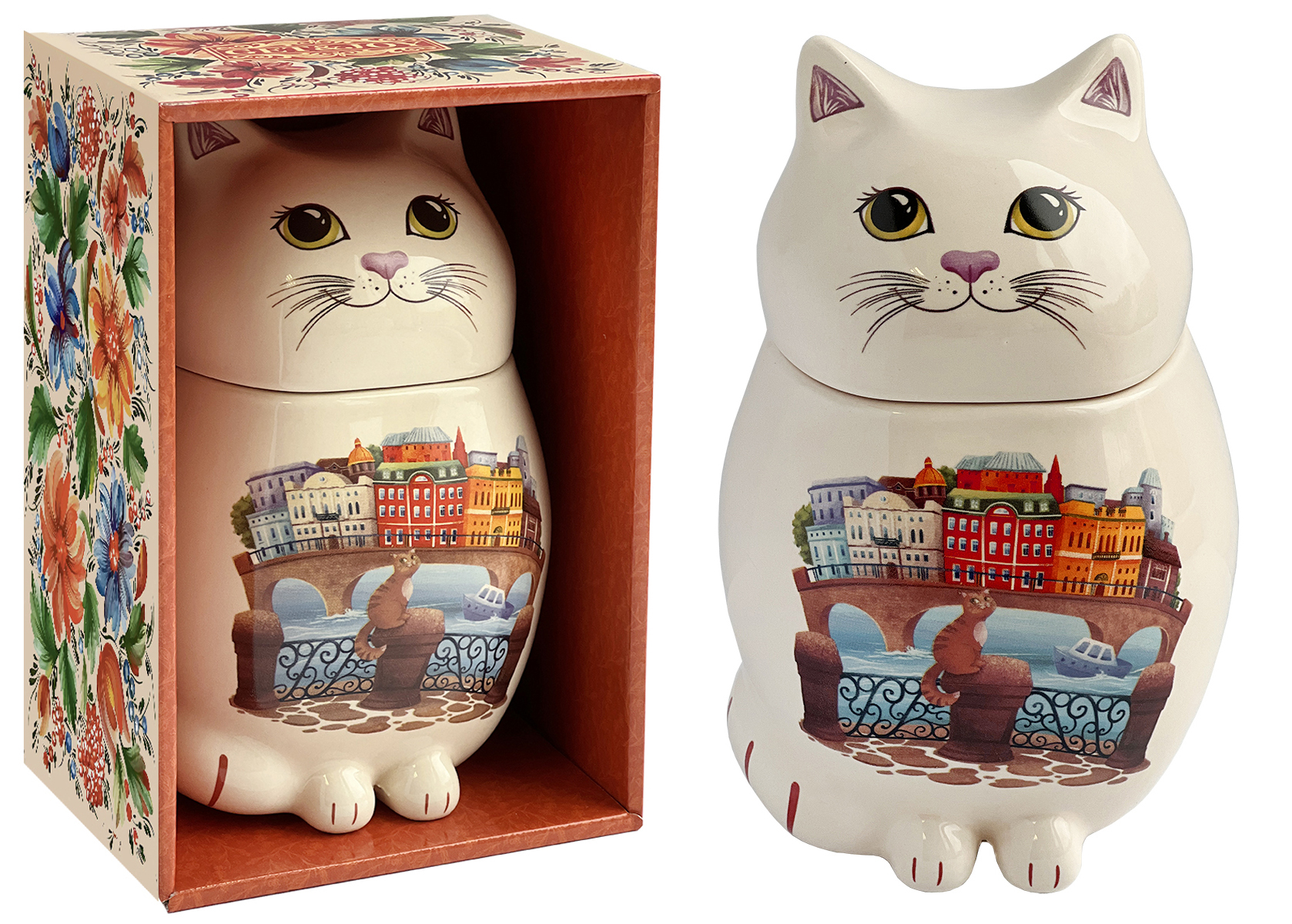 Чай GET&JOY Чайница керамическая - Кот Цветной город 50г 6шт Шри-Ланка 27995
