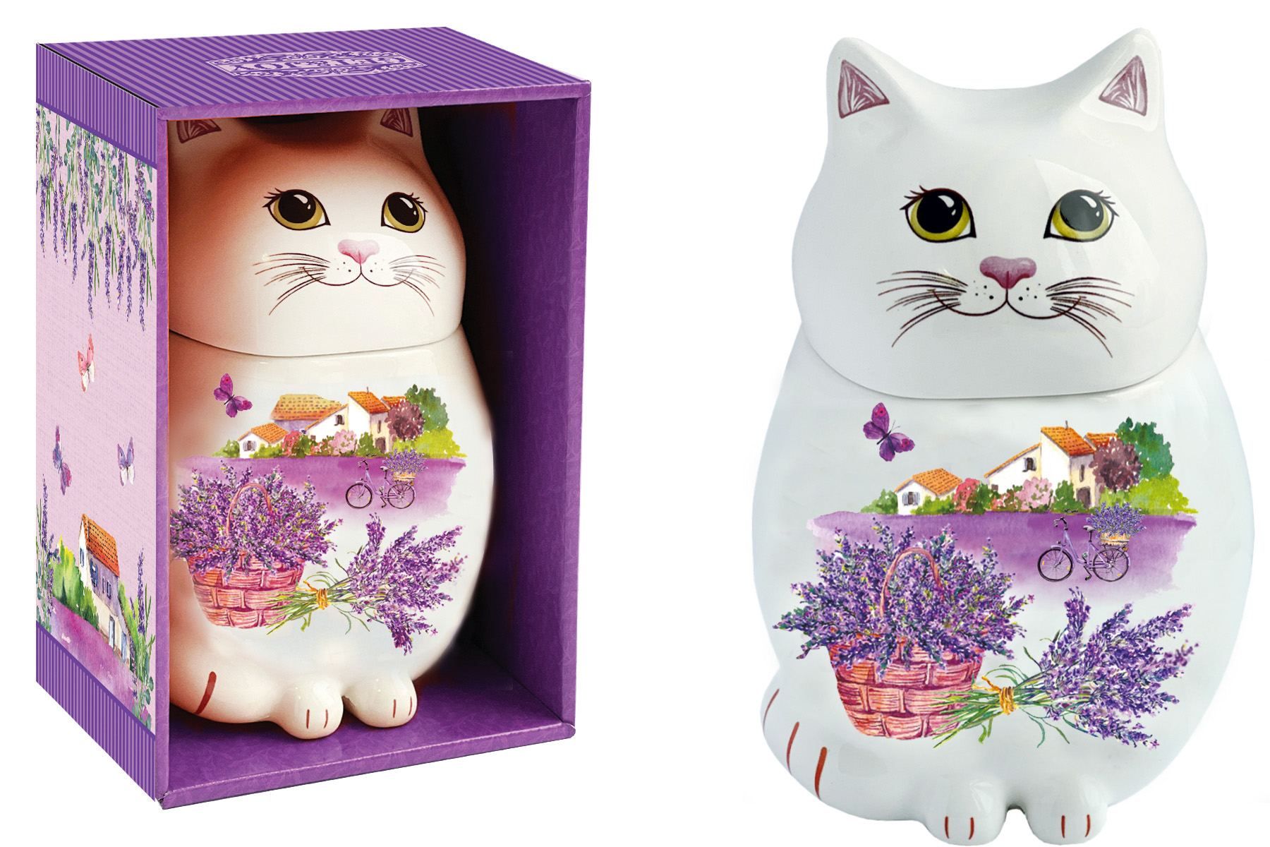 Чай GET&JOY Чайница керамическая - Кот Букет лаванды 50г 6шт Шри-Ланка 0258/28067