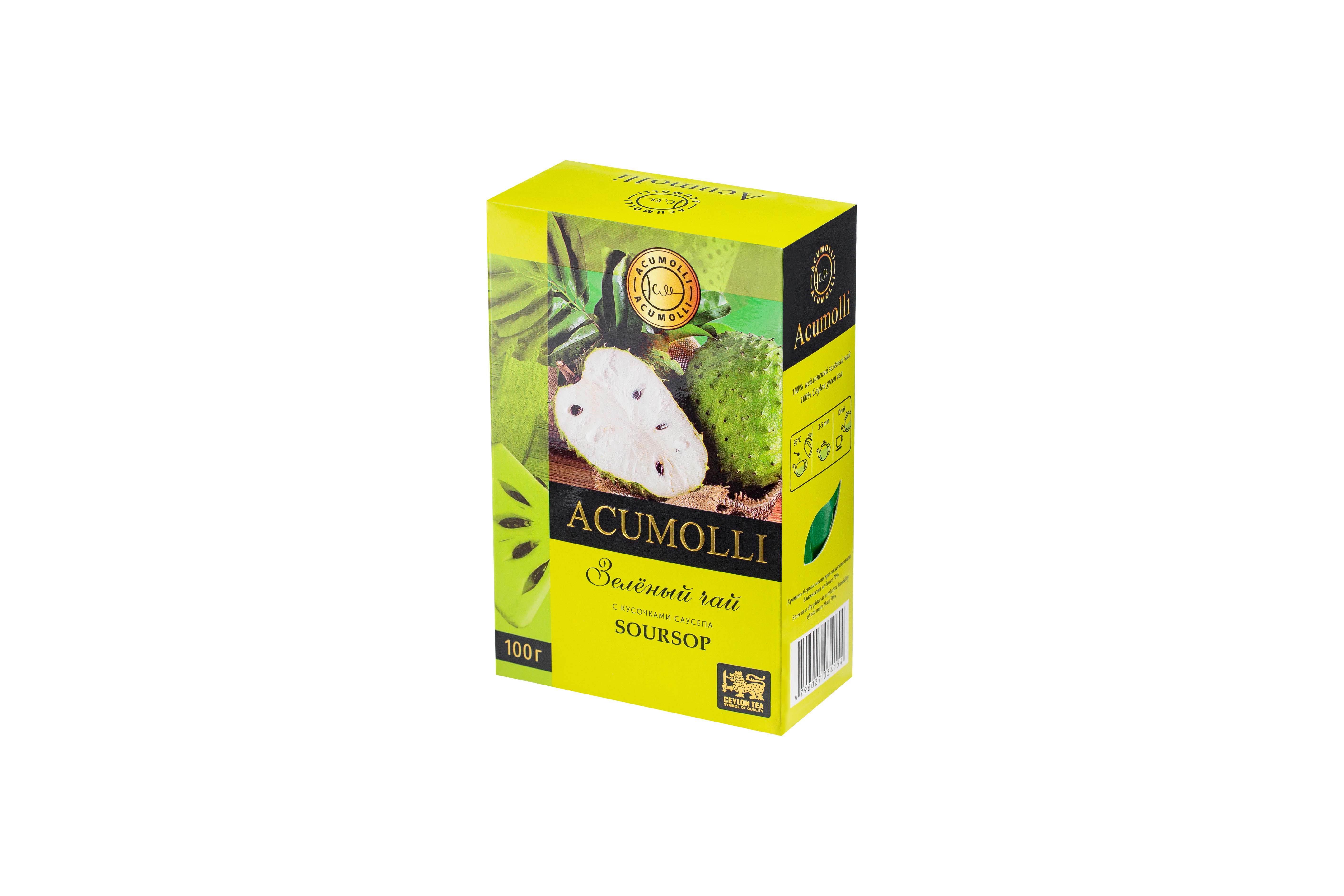 Чай АКУМОЛЛИ 100гр зелёный SOURSOP (с кусочками саусепа) 48шт