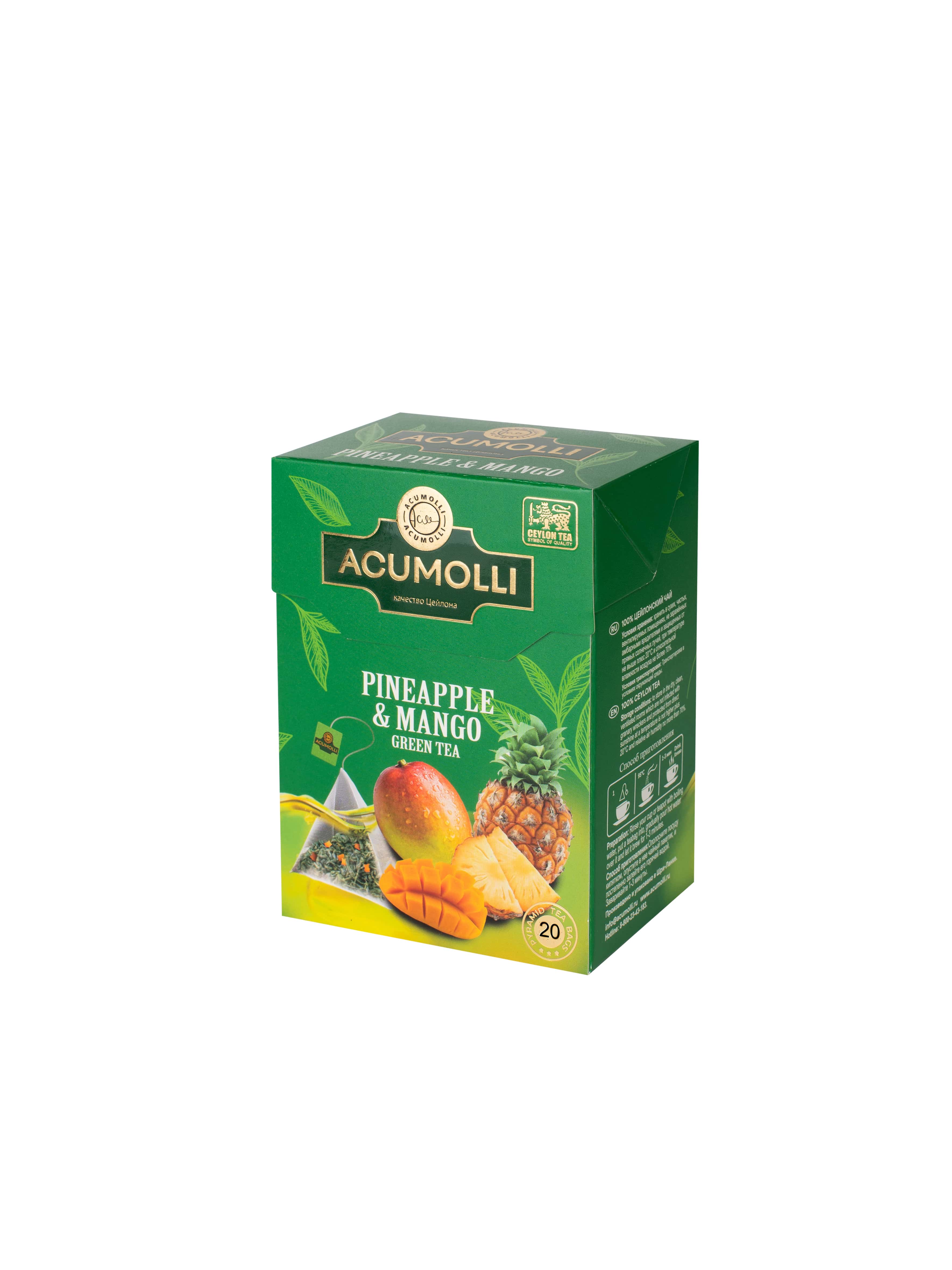 Чай АКУМОЛЛИ 25пак зеленый Манго & Ананас пирамидки 24шт