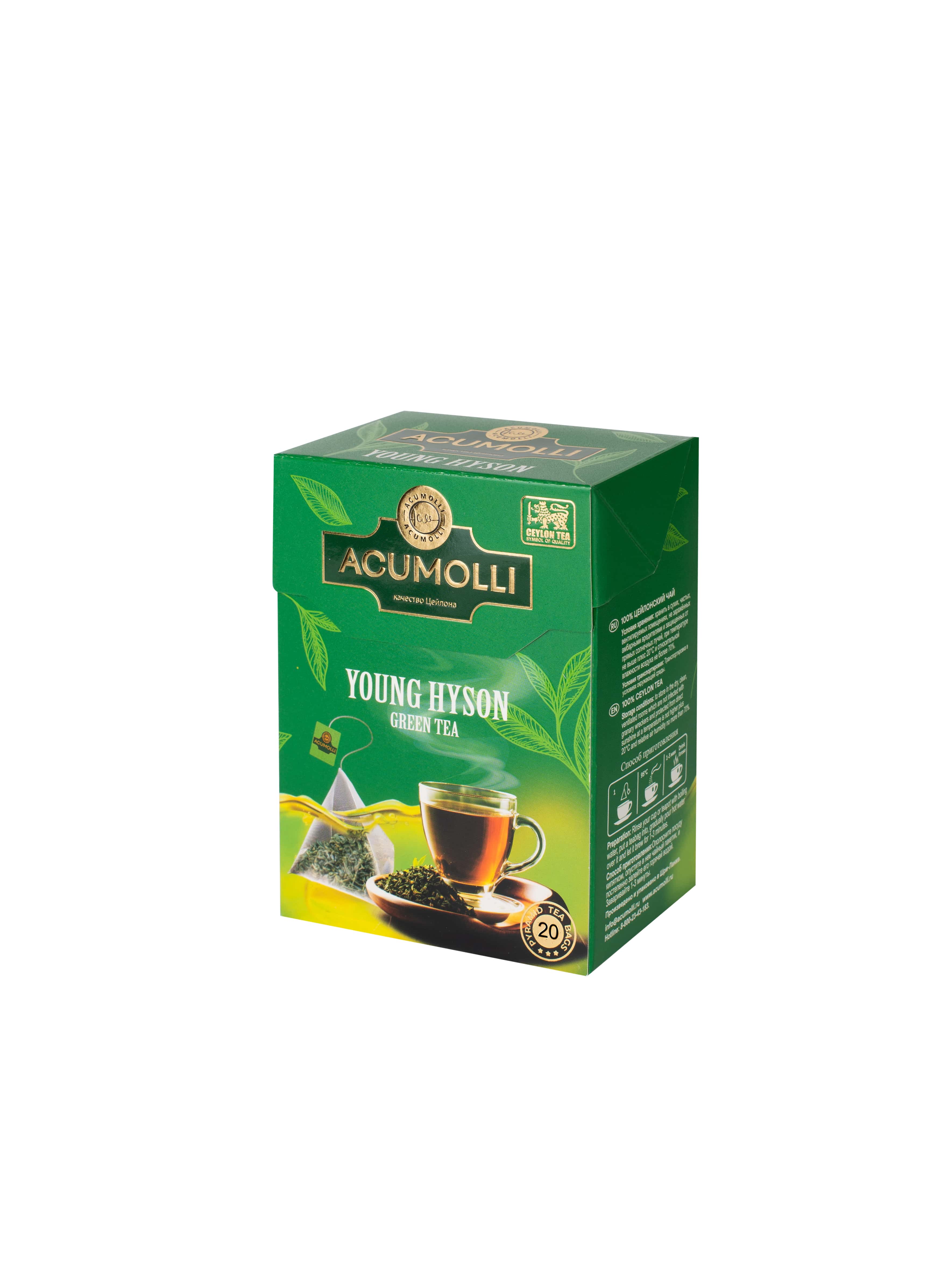 Чай АКУМОЛЛИ 25пак зелёный YOUNG HYSON пирамидки 24шт