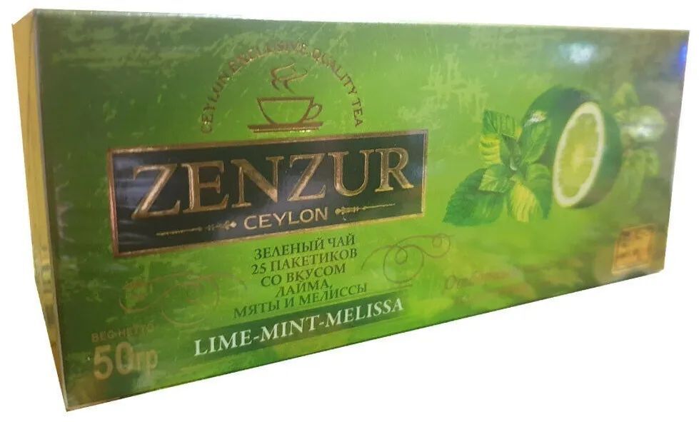 Чай ЗЕНЗУР 25пак зелёный Мелиса, Лимон, Ментол 24шт