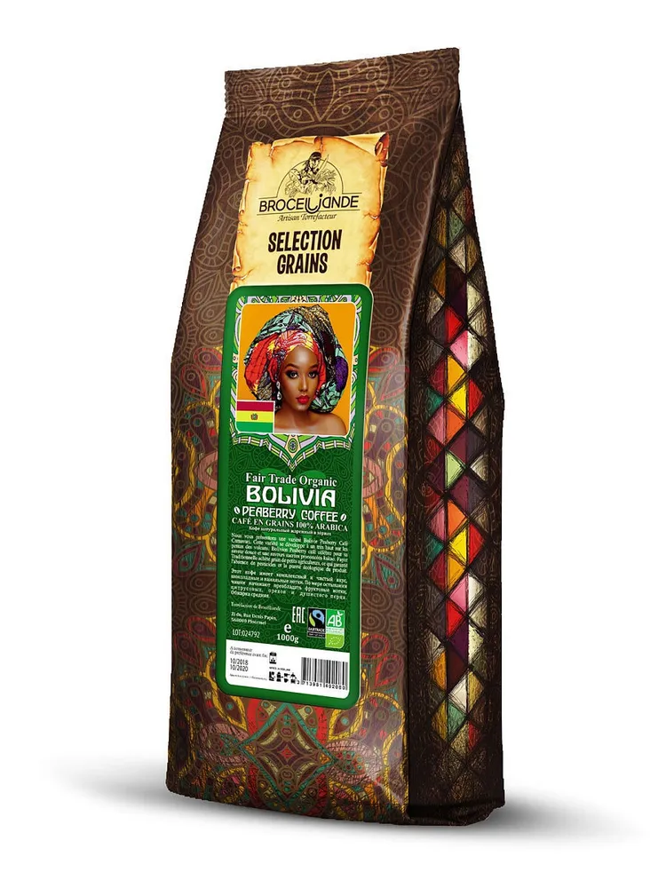 1000 Кофе Броселлианд Боливия зерно мягкий пакет 1000 гр 6 шт