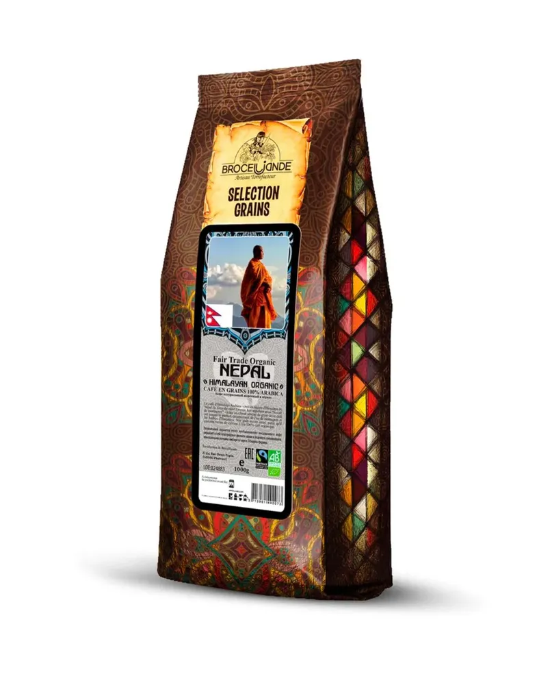 1000 Кофе Броселлианд Непал Гиммалаи Органик зерно мягкий пакет 1000 гр 6 шт