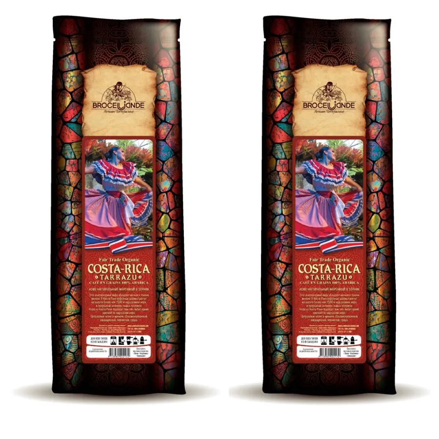 250 Кофе Броселлианд Коста Рика Тарразу молотый мягкий пакет 250 гр 14 шт
